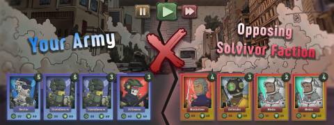 Our planned SoldierXSolvivor game is a Play-to-Earn auto battler in which two factions duke it out for supremacy. Players will pick factions, strategize in between battles and learn to maximize their winning potential through the careful, logical placement of their units.